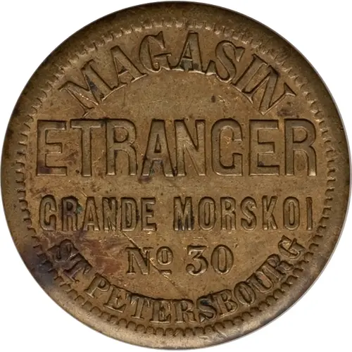 | Obverse lettering | MAGASIN ETRANGER GRANDE MORSKOI № 30 ST. PETERSBURG |