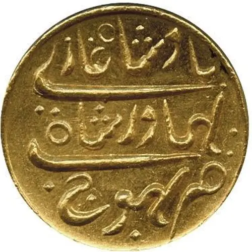 | Reverse description | Triple line Devanagari Legend with Khatar (dagger) Mark and date. |