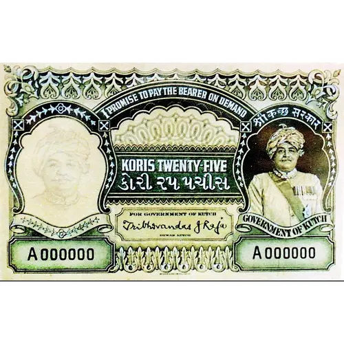 Obverse description Portrait of the Maharajah of Kutch at right.