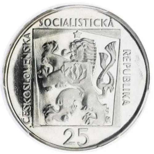 | Obverse lettering | ČESKOSLOVENSKÁ SOCIALISTICKÁ REPUBLIKA 25 (Translation: Czechoslovak Socialist Republic) |