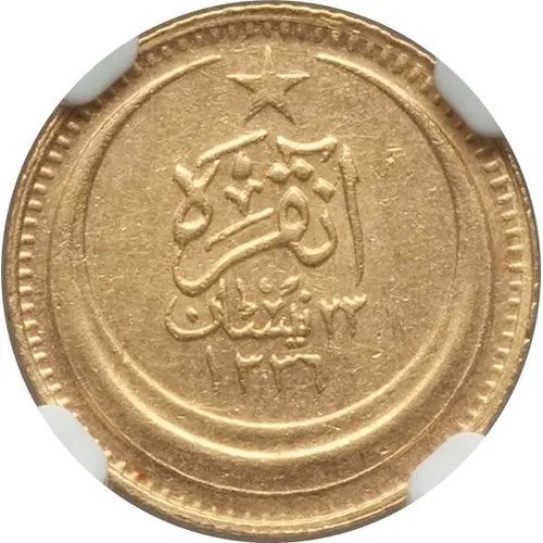 | Mô tả mặt trước | Star above inscription and date inside crescent |