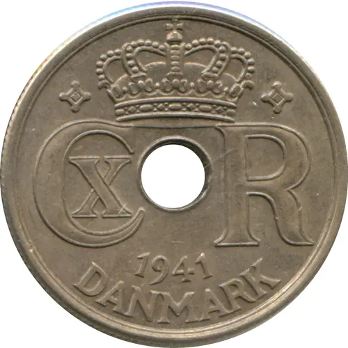 | Obverse lettering | CX R 1941 DANMARK (Translation: Christian X, King of Denmark) |