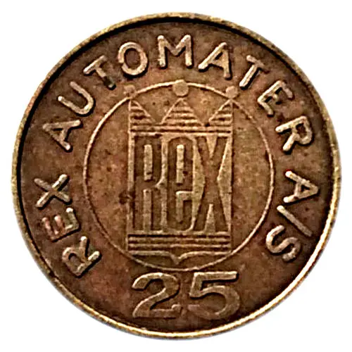 | Obverse lettering | REX AUTOMATER AS REX 25 |