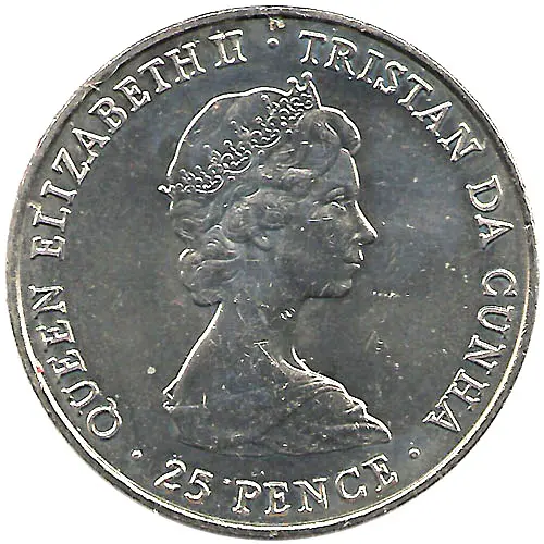 | Ön yüz lejandı | QUEEN ELIZABETH II · TRISTAN DA CUNHA · 25 PENCE · |