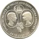 Prince Charles picture on the left side in an oval with Lady Diana`s picture on the right side in an oval. Both facing each other. Above their pictures, part Saint Helena`s Coat and Arms in an oval. Flower joining their pictures below. |