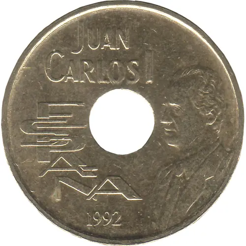 | Obverse lettering | JUAN CARLOS I ESPAÑA 1992 (Translation: Juan Carlos I Spain 1992) |