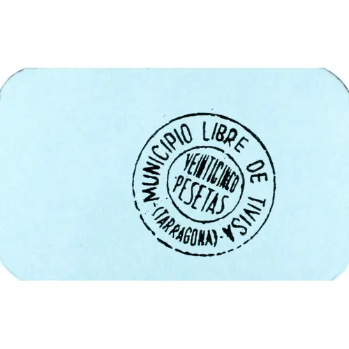 (Translation: Free Municipality of Tivisa (Tarragona) Twenty-five Pesetas)