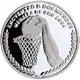 The action of throwing the ball in the basket of basketball is observed and, in the upper arch, read `ENCVENTRO D DOS MVNDOS` and `MEDALLA DE ORO 2004`. |