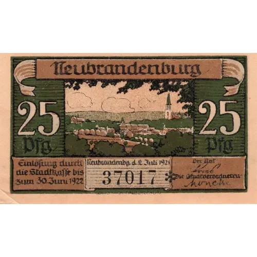 | Opschrift voorzijde | Neubrandenburg 25 Pfg. |