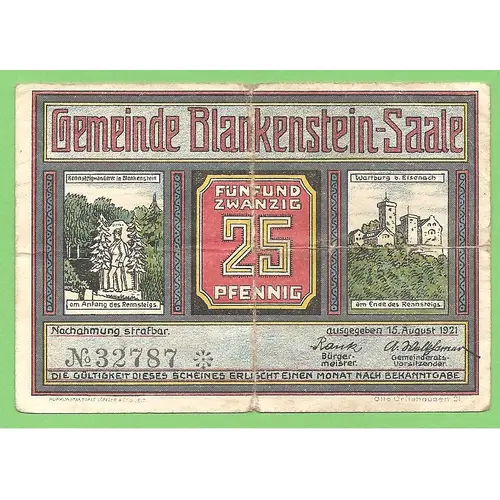 GEIMEIDE BLANKENSTEIN - SAALE ausgegeben 15 august 1921 |