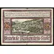 Ticket divided into 3 parts with upper and lower inscriptions a man between 2 fir trees worth 25 pfennig castle on a hill |