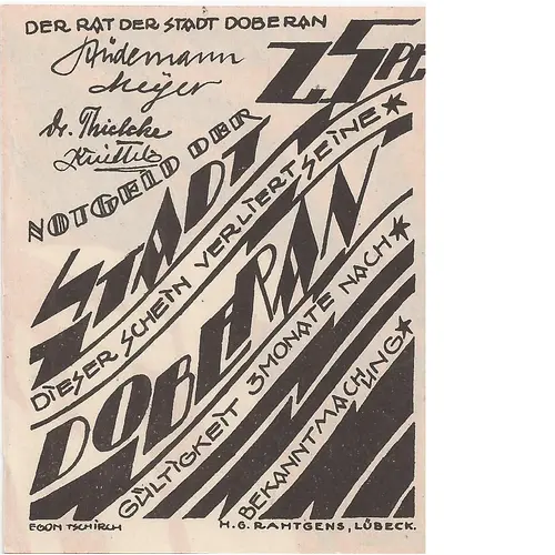 | Printer | H. G. Rahtgens, Lübeck, Germany |