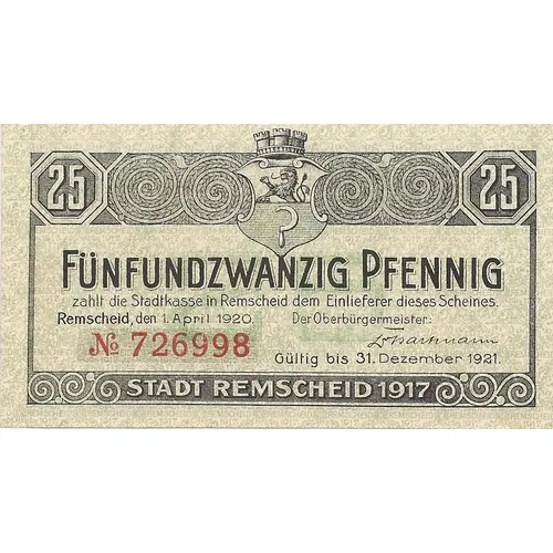 | 額面 | 25 Pfennigs (25 Pfennige) (0.25) |