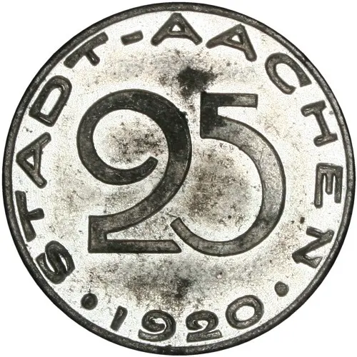 | Obverse lettering | STADT-AACHEN 25 ·1920· |