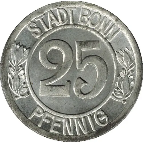 | Obverse lettering | STADT BONN 25 PFENNIG |