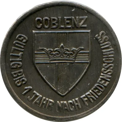 | Obverse lettering | COBLENZ GÜLTIG BIS 1 JAHR NACH FRIEDENSSCHLUSS |