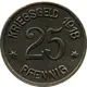 | Reverse lettering | KRIEGSGELD 1918 25 ✶ PFENNIG ✶ |