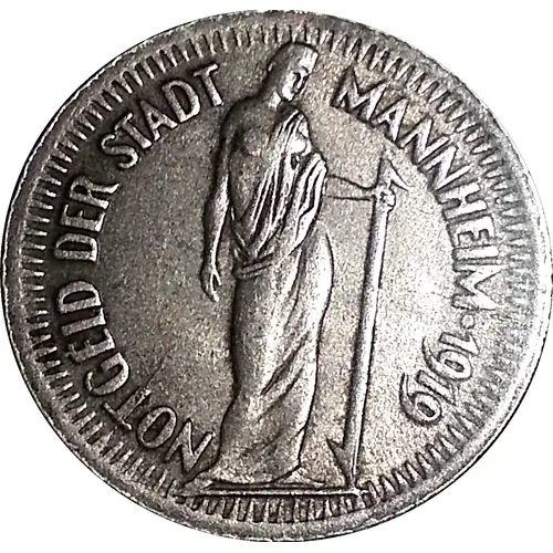 | Obverse lettering | NOTGELD DER STADT MANNHEIM 1919 |