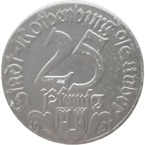 | Leyenda del anverso | Stadt-Rothenburg o/Tauber 25 Pfennig 19 21 |
