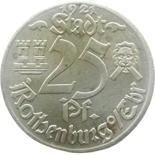 Obverse lettering 1921 Stadt 25 Pf Rothenburg o/Tbr