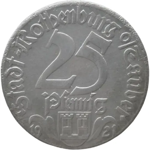 | Obverse lettering | Stadt-Rothenburg o/Tauber 25 Pfennig 19 21 |