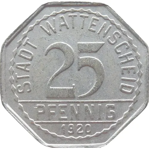 | Averslegende | STADT WATTENSCHEID 25 PFENNIG 1920 |