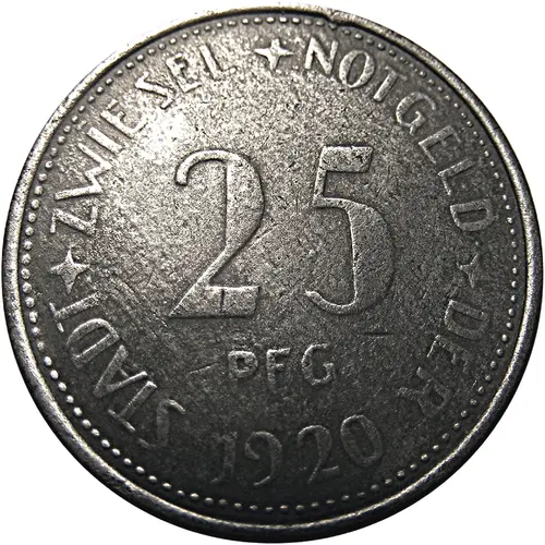 | Légende de l’avers | STADT ✦ ZWIESEL ✦ NOTGELD ✦ DER 25 PFG 1920 |