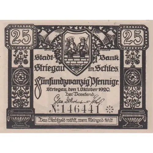 | Obverse lettering | Rathaus Striegau den 1.Oktober.1920 |