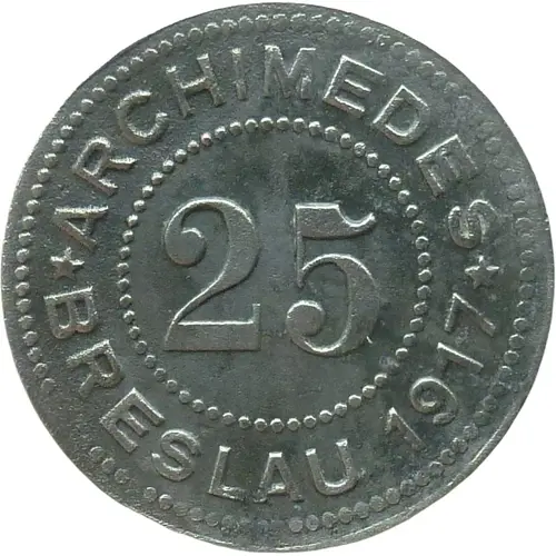 | Opis líce | ARCHIMEDES 25 BRESLAU 1917 |