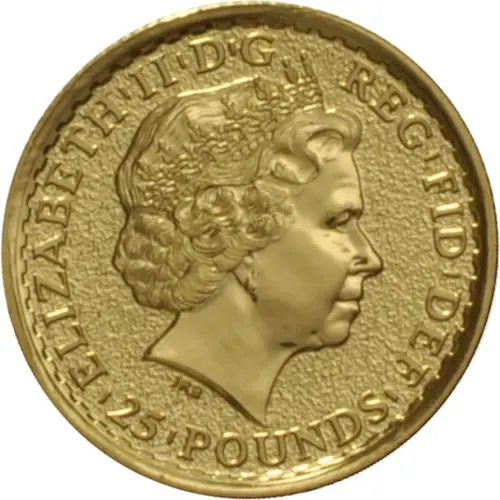 | Obverse lettering | ELIZABETH|II|D|G REG|FID|DEF IRB |25|POUNDS| (Translation: Elizabeth the Second by the Grace of God Queen Defender of the Faith (Elizabeth II Dei Gratia Regina Fidei Defensatrix)) |
