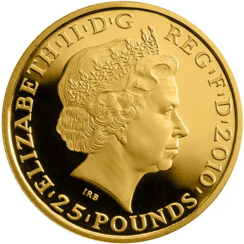 | Opis líce | ELIZABETH`II`D`G REG`F`D`2010 IRB `25`POUNDS` (Translation: Elizabeth the Second by the Grace of God Queen Defender of the Faith) |