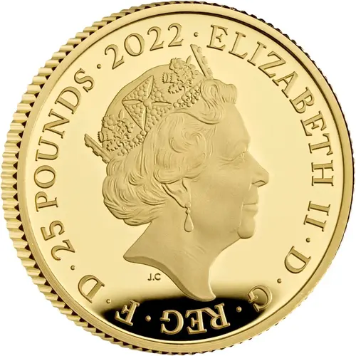 | Obverse lettering | ELIZABETH II·D·G·REG·F·D·25 POUNDS·2022 J.C (Translation: Elizabeth the Second by the Grace of God Queen Defender of the Faith) |