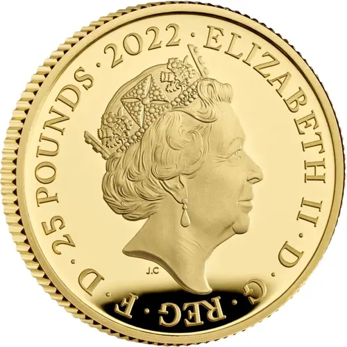 | Obverse lettering | ELIZABETH II·D·G·REG·F·D·25 POUNDS·2022· J.C (Translation: Elizabeth the Second by the Grace of God Queen Defender of the Faith) |