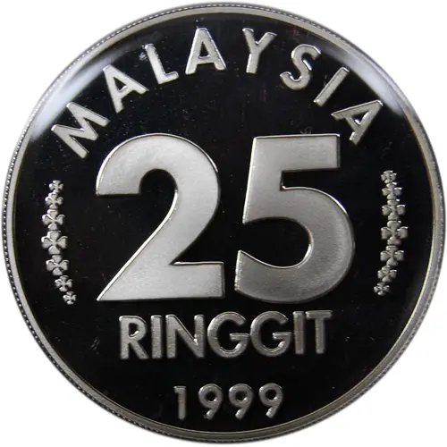 | Obverse lettering | MALAYSIA 25 RINGGIT 1999 |