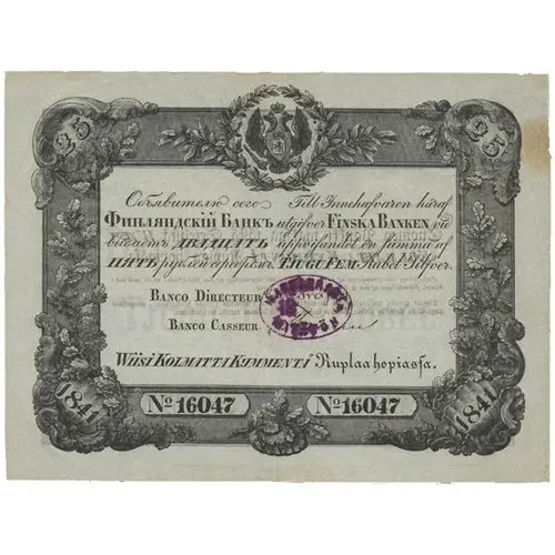 | Obverse description | Grey. Double headed eagle at top centre. Text in Russian, Swedish and Finnish. |