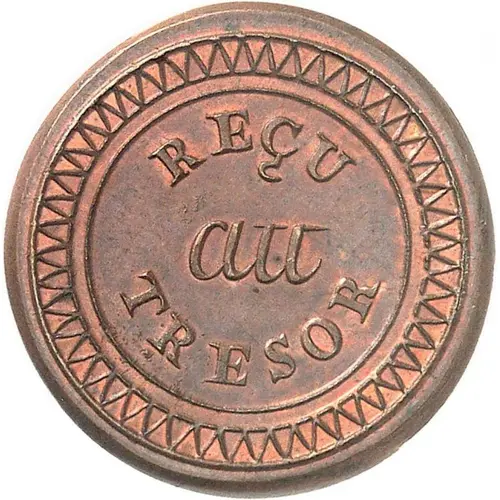 | Obverse lettering | REÇU au TRESOR (Translation: Received at the Treasury) |