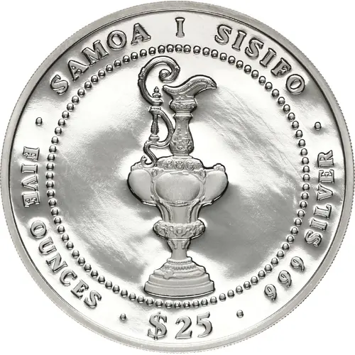 | Obverse lettering | SAMOA I SISIFO FIVE OUNCES · $25 · .999 SILVER |