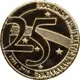 | Obverse description | Big numerals `25` with band and stars, resembling 25 Cents coin, Institution name near edge top, right to bottom, years on left bottom. Número grande `25` con banda y estrellas, similar a la moneda de 25 Centavos, nombre de la institución cerca del borde, desde arriba, derecha hasta abajo, añps abajo izquierda. |