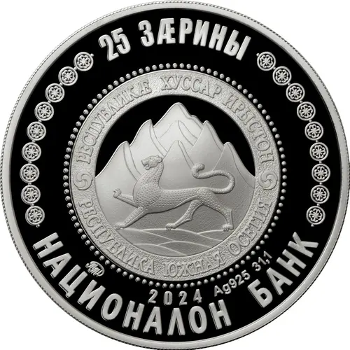 | Obverse lettering | 25 ЗÆРИНЫ РЕСПУБЛИКӔ ХУССАР ИРЫСТОН РЕСПУБЛИКА ЮЖНАЯ ОСЕТИЯ ММД 2024 Ag 925 31,1 НАЦИОНАЛОН БАНК |