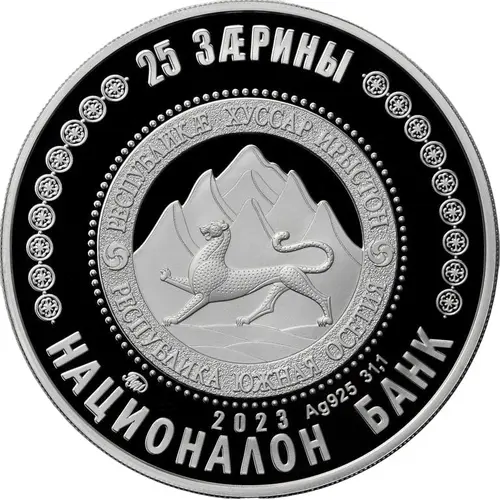 | Obverse lettering | 25 ЗÆРИНЫ РЕСПУБЛИКӔ ХУССАР ИРЫСТОН РЕСПУБЛИКА ЮЖНАЯ ОСЕТИЯ ММД 2023 Ag 925 31,1 НАЦИОНАЛОН БАНК |