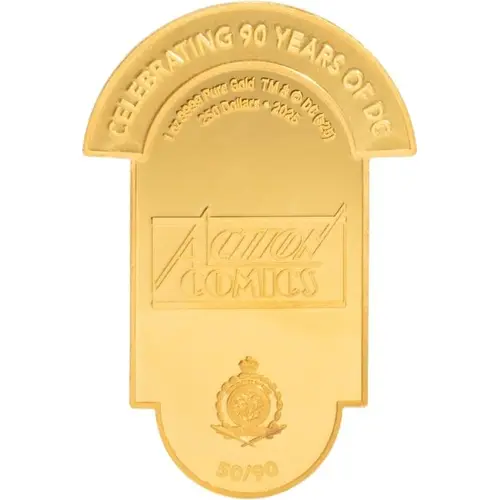 | Obverse lettering | CELEBRATING 90 YEARS OF DC 1oz 9999 Pure Gold TM & © DC (s25) 250 Dollars · 2025 ACTION COMICS PUBLIC SEAL OF NIUE ATUA NIUE TUKULAGI 50/90 |