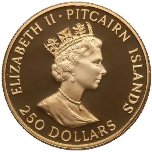 | Leyenda del anverso | ELIZABETH II·PITCAIRN ISLANDS 250 DOLLARS |