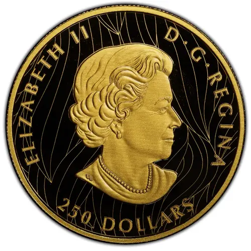 | Obverse lettering | ELIZABETH II D•G•REGINA 250 DOLLARS (Translation: Elizabeth II Queen by the grace of God) |