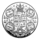 The reverse of this silver coin features the Seven Provinces Shield used in Canada from the 1870s to the early 20th century. The shield features a stylized royal crown and the coats of arms of the four founding provinces (Quebec, Ontario, New Brunswick and Nova Scotia) and those that joined Canada shortly after Confederation (Manitoba, British Columbia and Prince Edward Island). Underneath is a beaver and a ribbon with the bilingual inscription `DOMINION OF/DU CANADA`, and on either side, each within a laurel wreath, the individual shields of the founding provinces: Ontario and Nova Scotia on the left, and Quebec and New Brunswick on the right. |