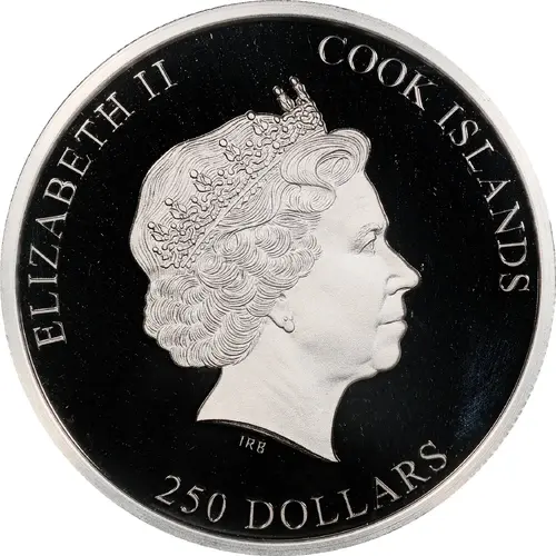 | Obverse lettering | ELIZABETH II COOK ISLANDS IRB 250 DOLLARS |
