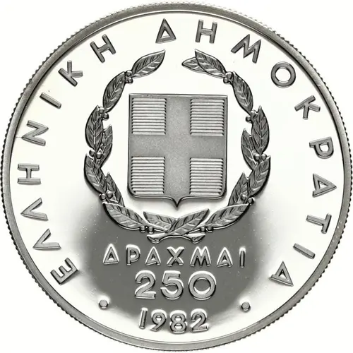 | Obverse lettering | ΕΛΛΗΝΙΚΗ ΔΗΜΟΚΡΑΤΙΑ ΔΡΑΧΜΑΙ 250 .1982. |