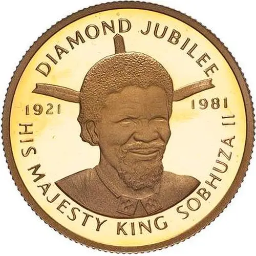| Obverse lettering | DIAMOND JUBILEE 1921 1981 HIS MAJESTY KING SOBHUZA II |