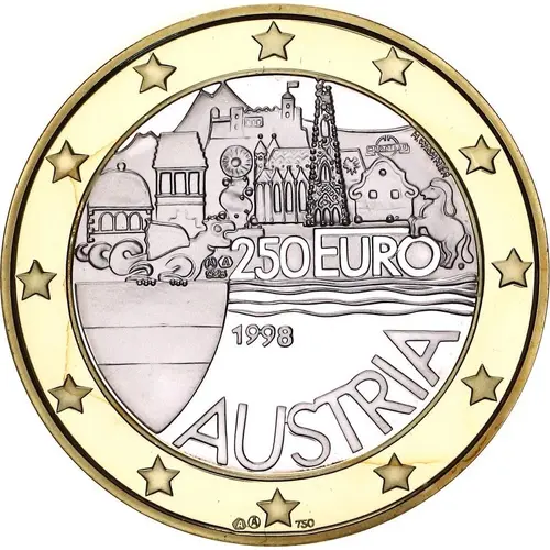 | Obverse lettering | 250 EURO 1998 AUSTRIA A 925 A 750 |