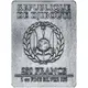 Djibouti coat of arms, value below, then the mass of the coin and its silver fineness. |