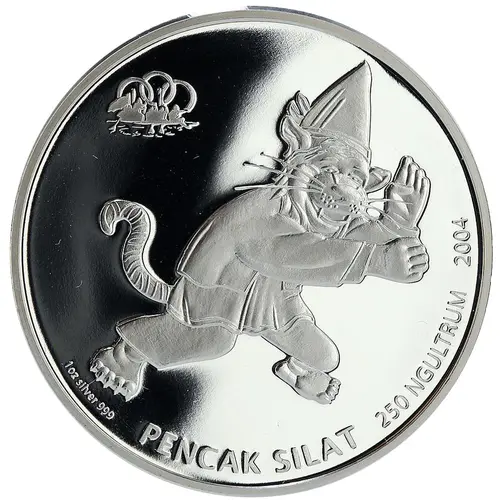 | Obverse lettering | PENCAK SILAT 250 NGULTRUM 2004 1oz silver 999 |